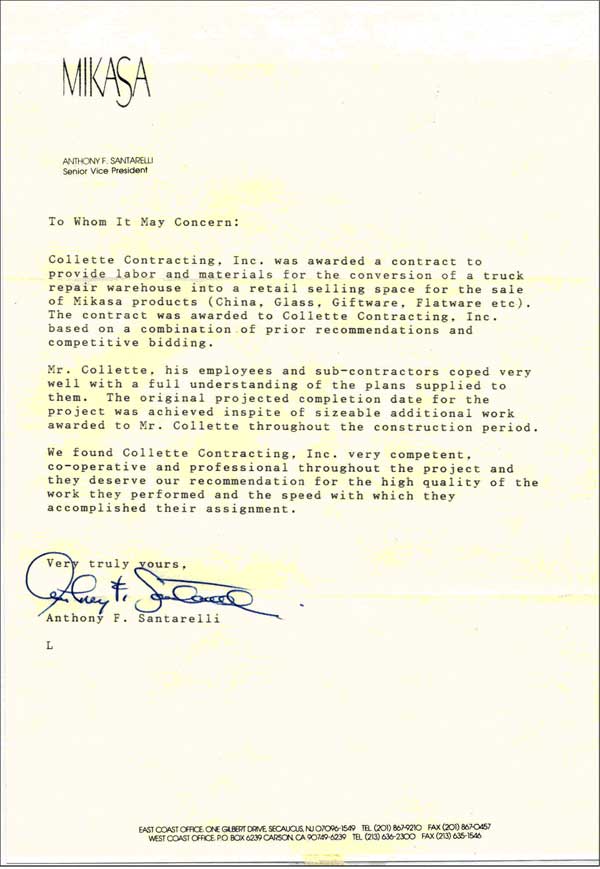 COLLETTE CONTRACTING PO Box 363 Pequannock, NJ 07440 Phone: 201-832-1014 Fax: 973-633-5016 E-mail: gcollette@collettecontracting.com