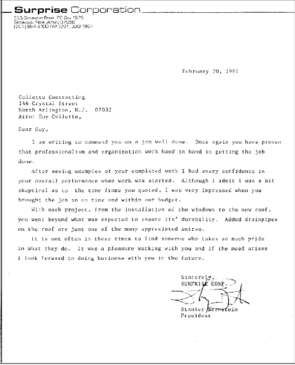 Letter from Surprise Corporation